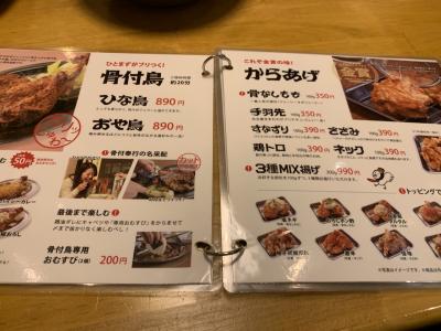 看板料理の骨付鶏は、ひな鳥とおや鳥があり、ガブリついても良し、また希望によりカットしてくれます。