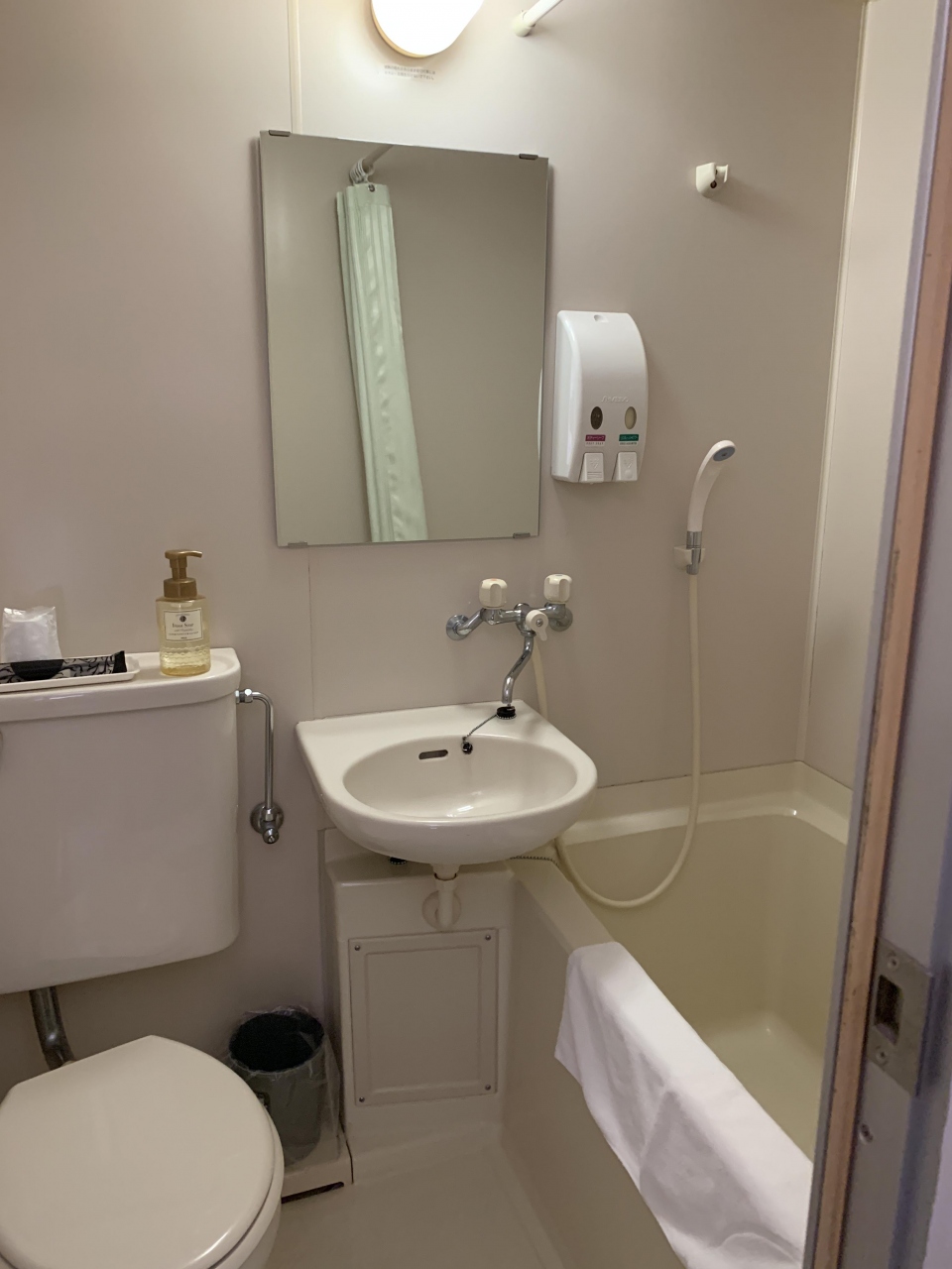 ごく普通のビジネスホテルといった感じで、トイレはユニットバスも特にストレスなく使えました。チェックアウト時はフロントに置いてある箱に鍵を入れるだけで大丈夫でした。- 旅行時期