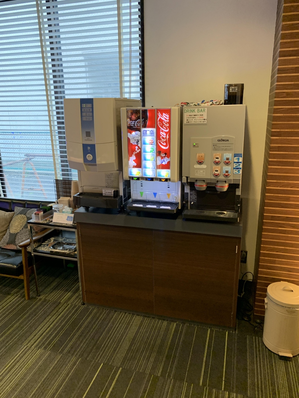 フロント横にドリンクバーがあり、夜の0:00まで利用可能です。