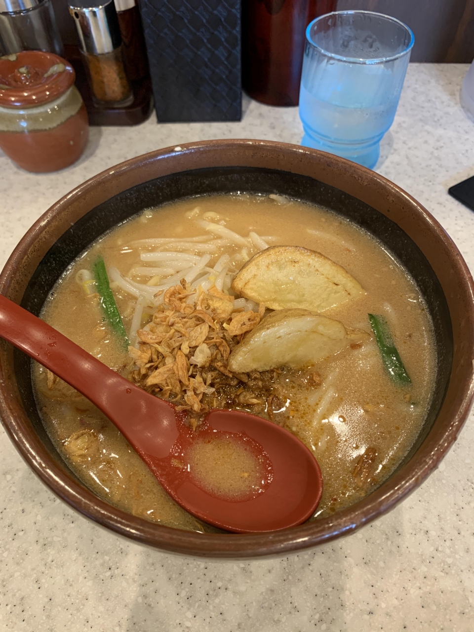 醤油ベースのスープは見た目よりあっさりで、麺は中太のストレート麺で茹で加減もよく美味しかったです。- 旅行時期