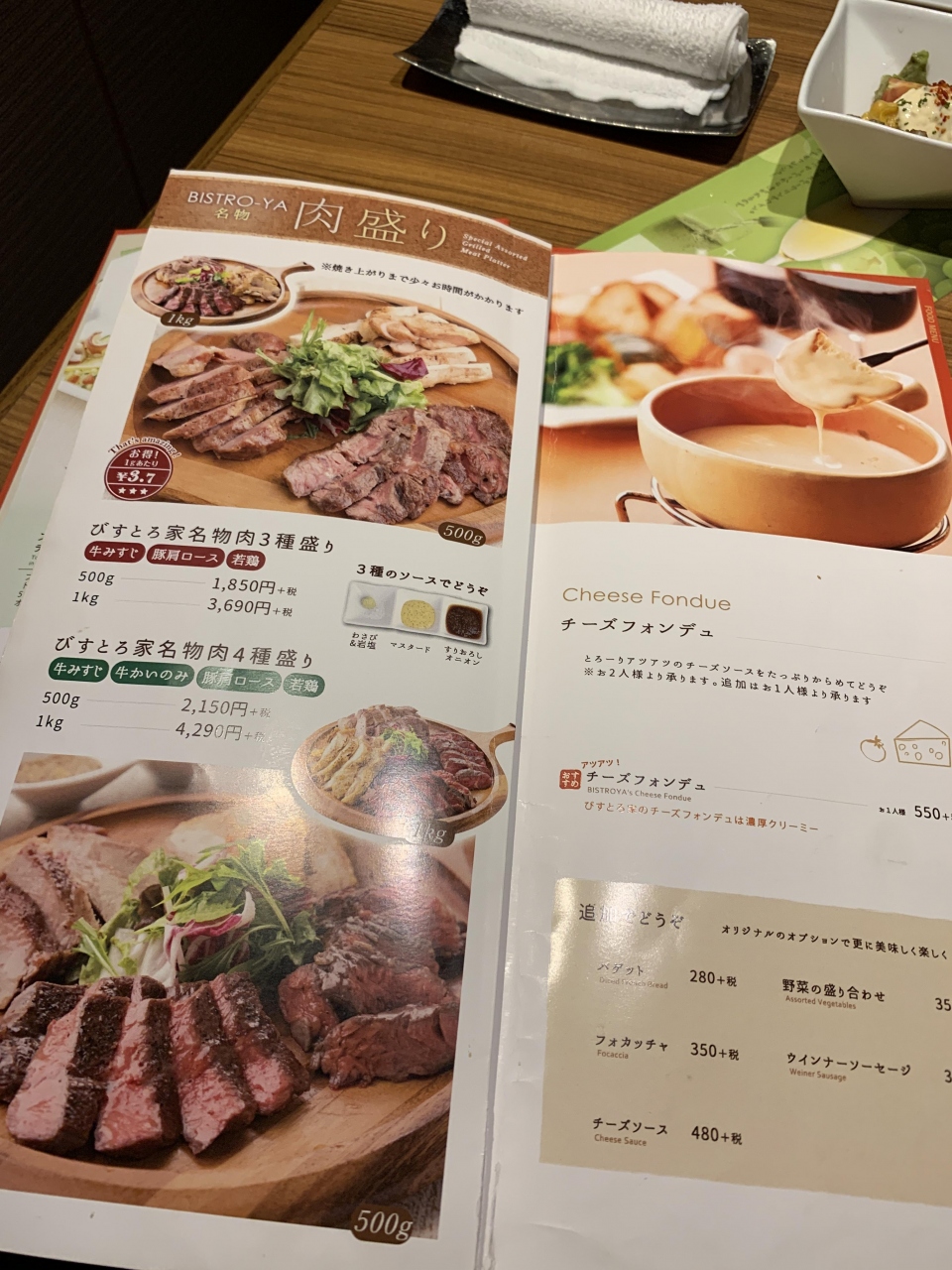 料理の種類も普通の居酒屋っぽくなくお肉の盛り合わせやカルパッチョや色々あります。