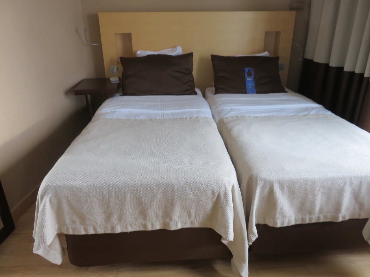翌日のタリン行きのフェリーターミナルに徒歩圏内なのと安い価格でここに決めました。沈む夕陽が素敵でした。ただホテルそのものも沈みかけているというか調度が古いのはやむを得ないもののハウスキーピングの仕事が粗いのが気になりました。掃除が雑(電気ポットが汚れてました)、ノックもせずに部屋に入ってくる。一応フロントにクレームしましたが。良い施設も人間が壊して行くんだなと思いました。但しスーパーブレックファーストと銘打った朝ごはんは種類も多く美味しかったです。