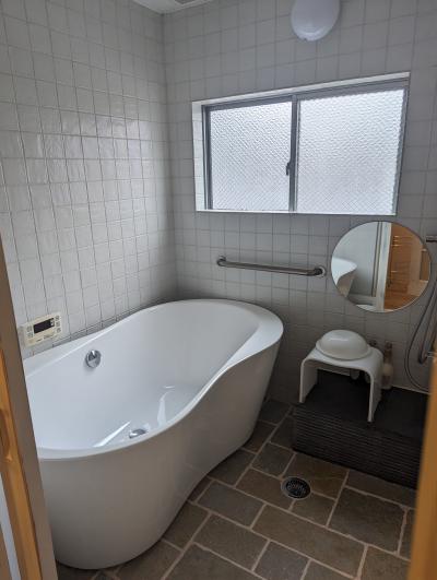 大浴場は、湯船も大きくて洗い場も8人くらいまであり、しかも貸切でした。