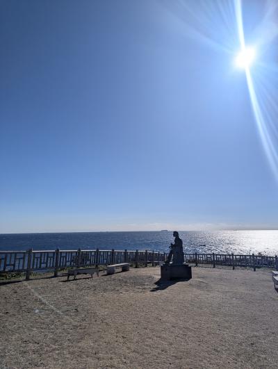 ベンチもあり、中央には「灯台を描く女性画家」の像。