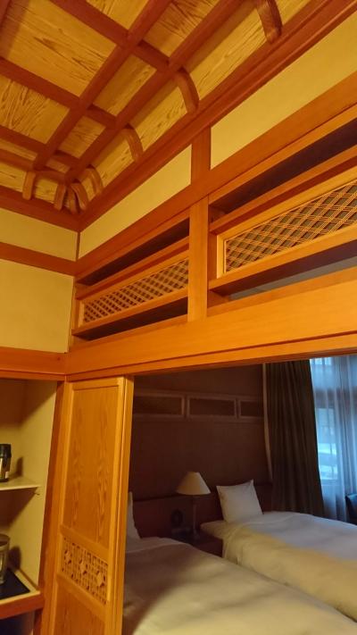 お部屋は和室と奥に2ベッドの寝室。襖も欄間も入り口もすべて木造。これが宮大工建築なのかな、清々しい気持ちになります。
