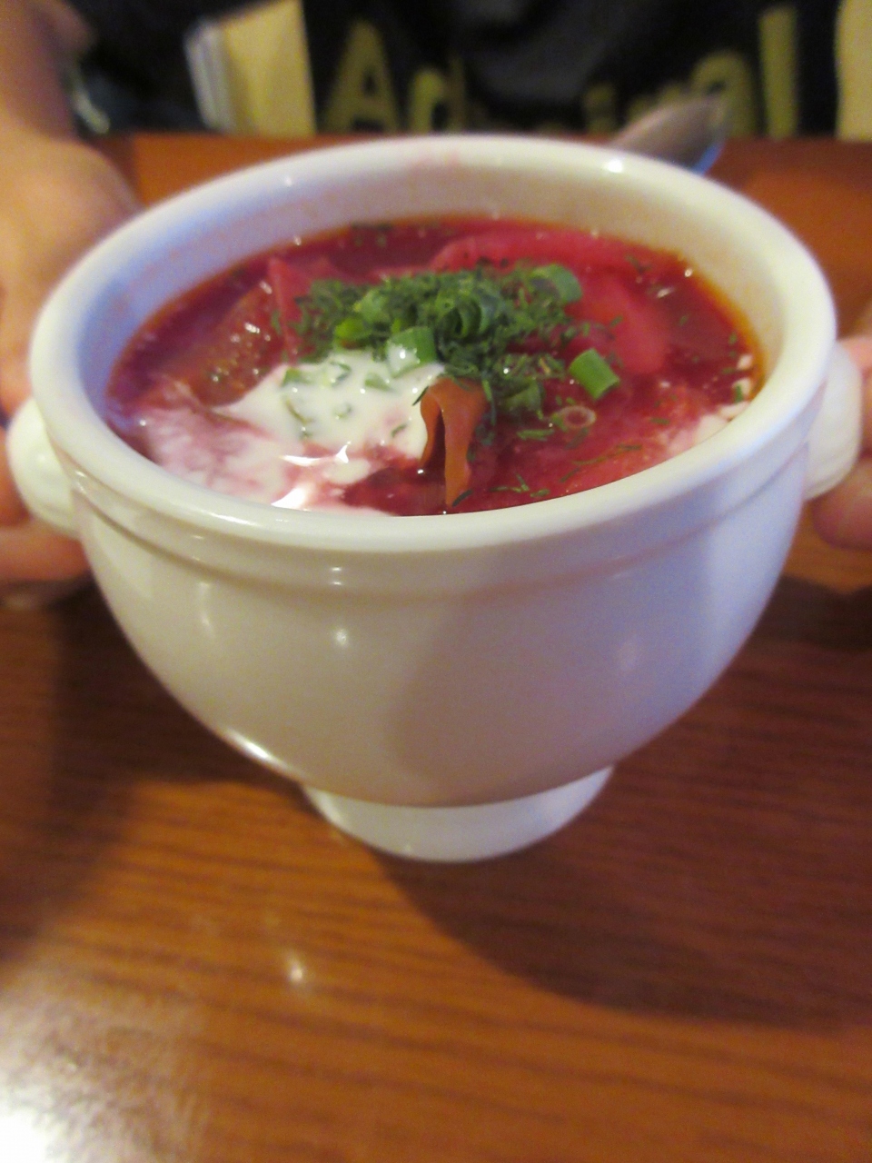 ボルシチは色が毒々しいので、びくびくしながら口を付けた息子Bだったが、美味しい美味しいとすぐに平らげていた。