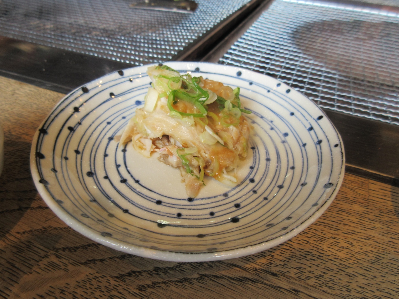 まず、焼き身と味噌とねぎを混ぜて頂き、残った皮はしっかりと焼き直してサーブしてくれる。