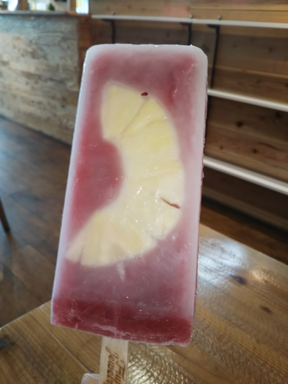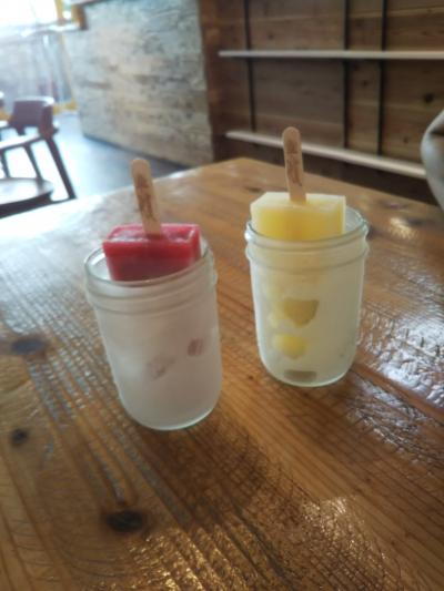 カラフルなフルーツのアイスキャンディーが並んでます。