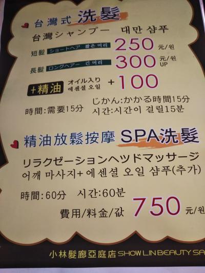 日本ではヘッドスパは高いのですが、こちらでは750元。