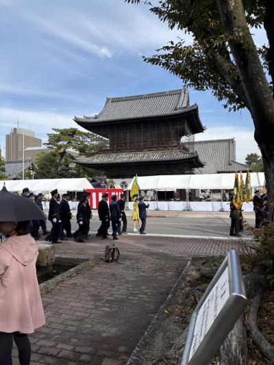 建中寺前です。消防士さん達が行進していて寺には入れない感じです。しばら...