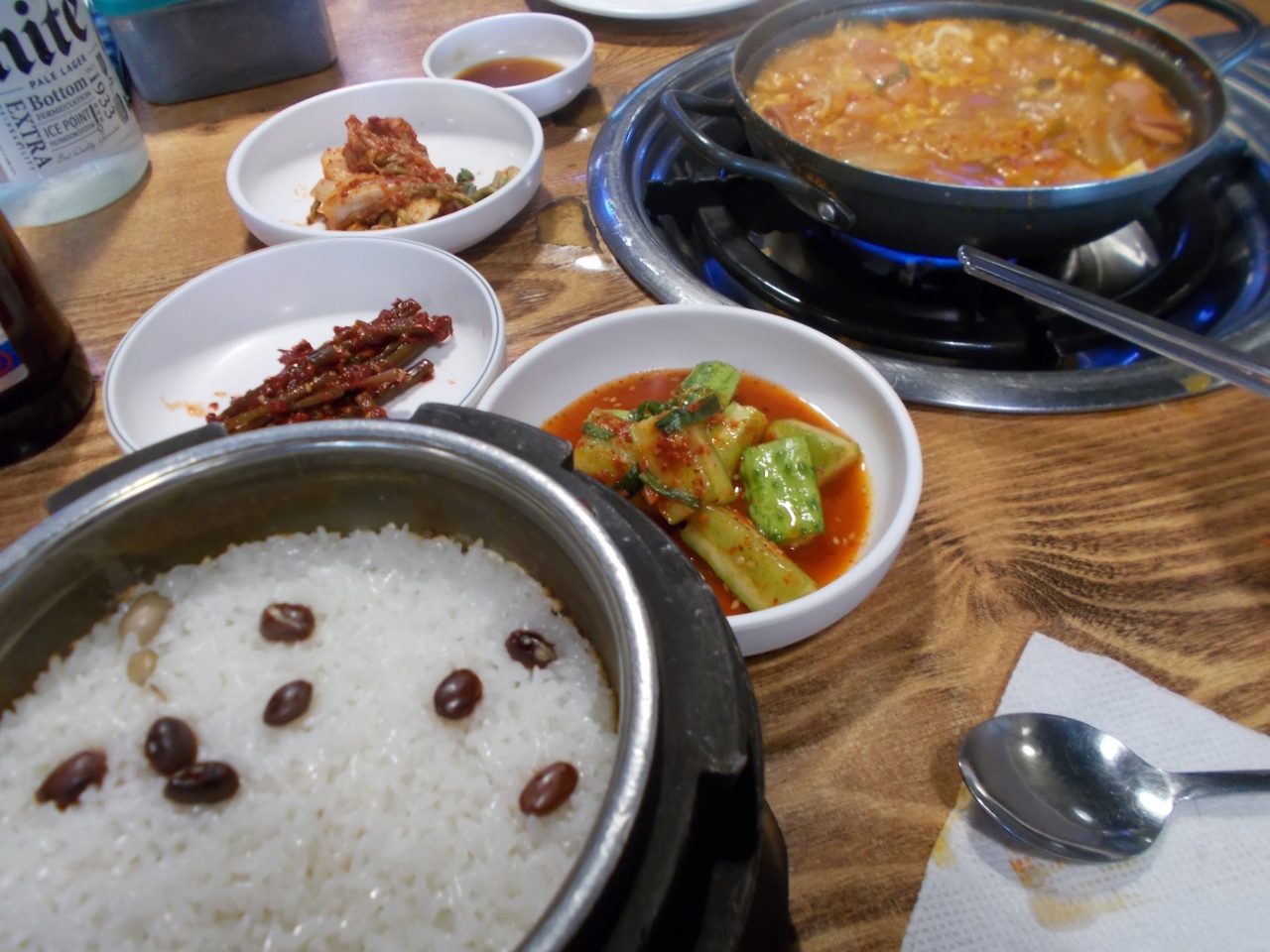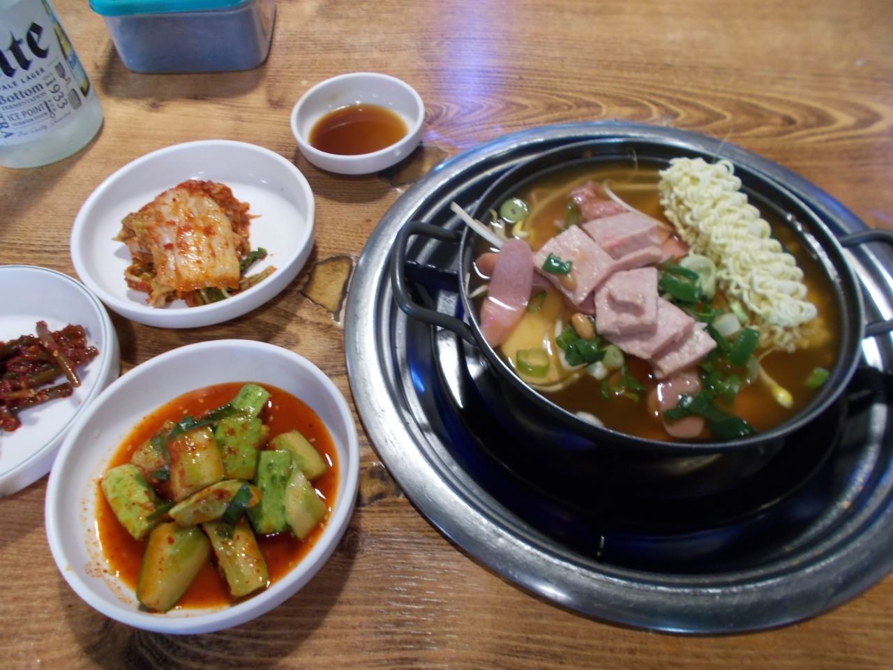 プデチゲを食べたくて、店頭の写真に誘われて入りました。プデチゲを一人前で頼められるのか心配でしたが、一人前での注文ができました。ランチョンミート、もやし、キムチ、ラーメン等が入ったプデチゲが8,000wonでした。また、ごはんは釜的なものででてきました。炊き立てで満足の美味しさでした。おすすめのお店です。
