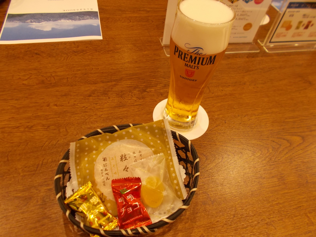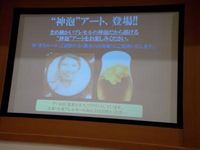 ガイドツアーと違い、試飲は、プレミアム・モルツの2種類のみです。但し、おつまみはガイドツアーよりよいです。この講座は、ビールの泡だけを堪能する神泡を味わえることができます。そして、通常のプレモルと香るエールの違いも十分理解できます。