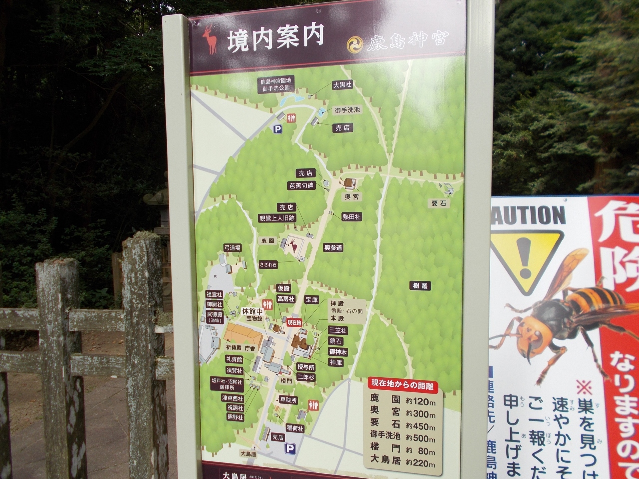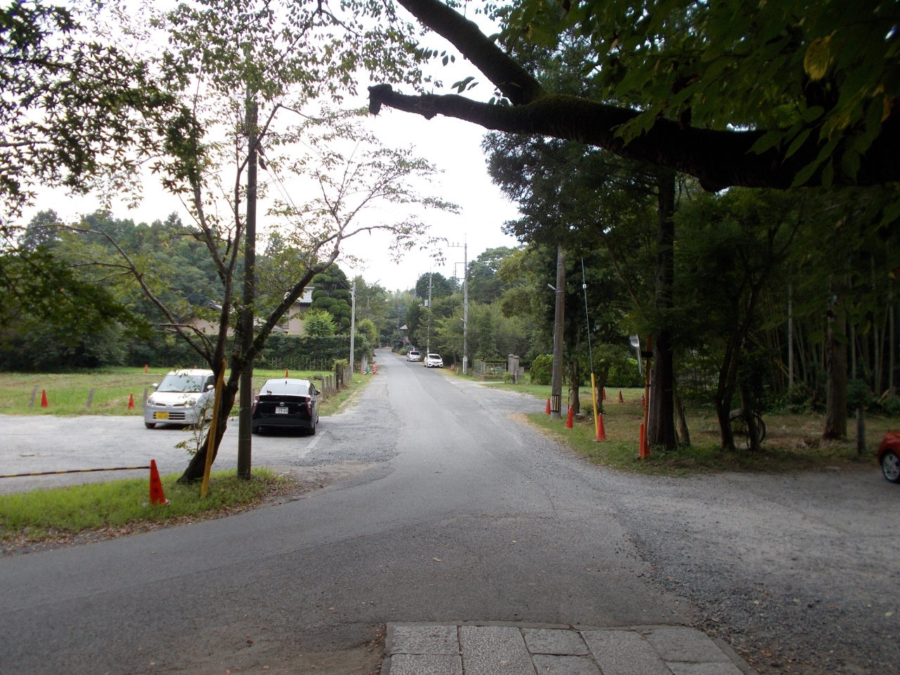大きな駐車場は第一駐車場、第三駐車場があります。第一駐車場は門前の団子屋等がありますが、総門まで550m、第三駐車場は総門まで350mあります。
