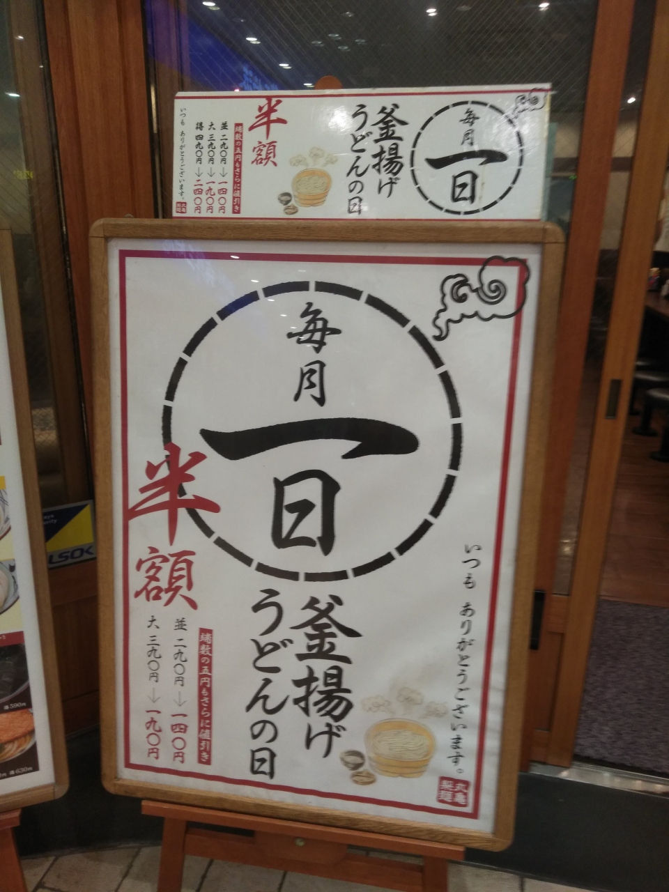 • 毎月一日は釜揚げうどんの日です。