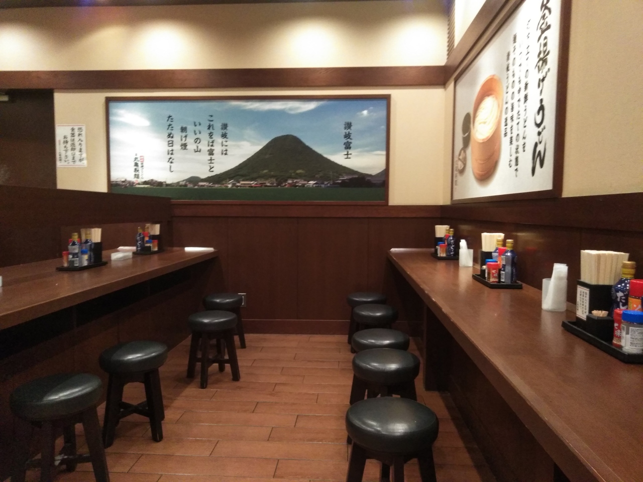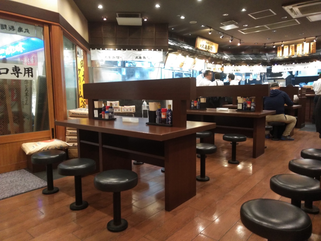 丸亀製麺が駅構内にあります。乗換のついでに食事にも丁度よいお店です。また、毎月一日はお得の日です。なんと釜揚げうどんが半額でうれしいです。こんなお得な日には、釜揚げうどんを食べるしかありません。私は並でも十分です。