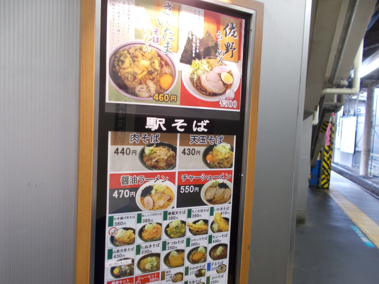 京浜東北線のホームにある。立ち食いそばのお店です。