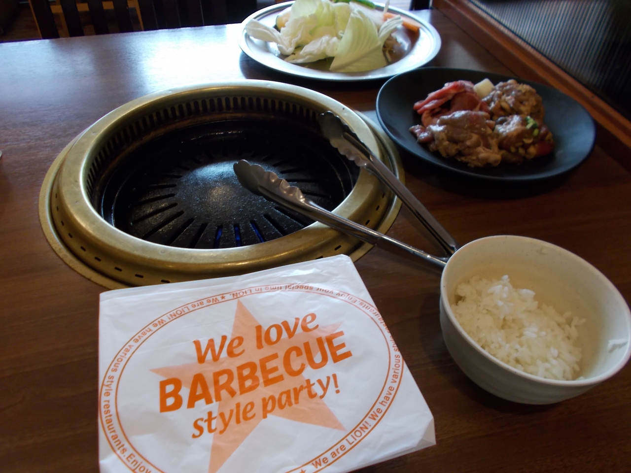 ランチタイムの時間の営業は、土曜、日曜、祝日のみです。90分制の4種のジンギスカン食べ放題ランチ、1480円(税抜)をいただいてきました。長いテーブルが、二人づつ区切られていて、ひとりジンギスカンができます。実際にひとりの人が複数来ていました。