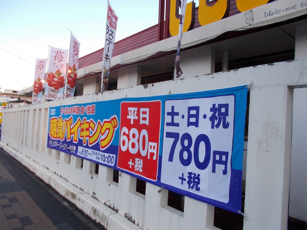 朝食バイキングといえば、ホテルのの朝食というイメージですが、ファミリーレストランでも朝食バイキングがあります。ココスの朝食バイキングは土日祝のみのお店が多いのですが、ここのお店は平日もやっています。しかも、平日は、土日祝より100円安い料金で、平日は、680円+税で、税込で748円です。思う存分食べられます。だけど、食べ放題は以外と食べれないですね。