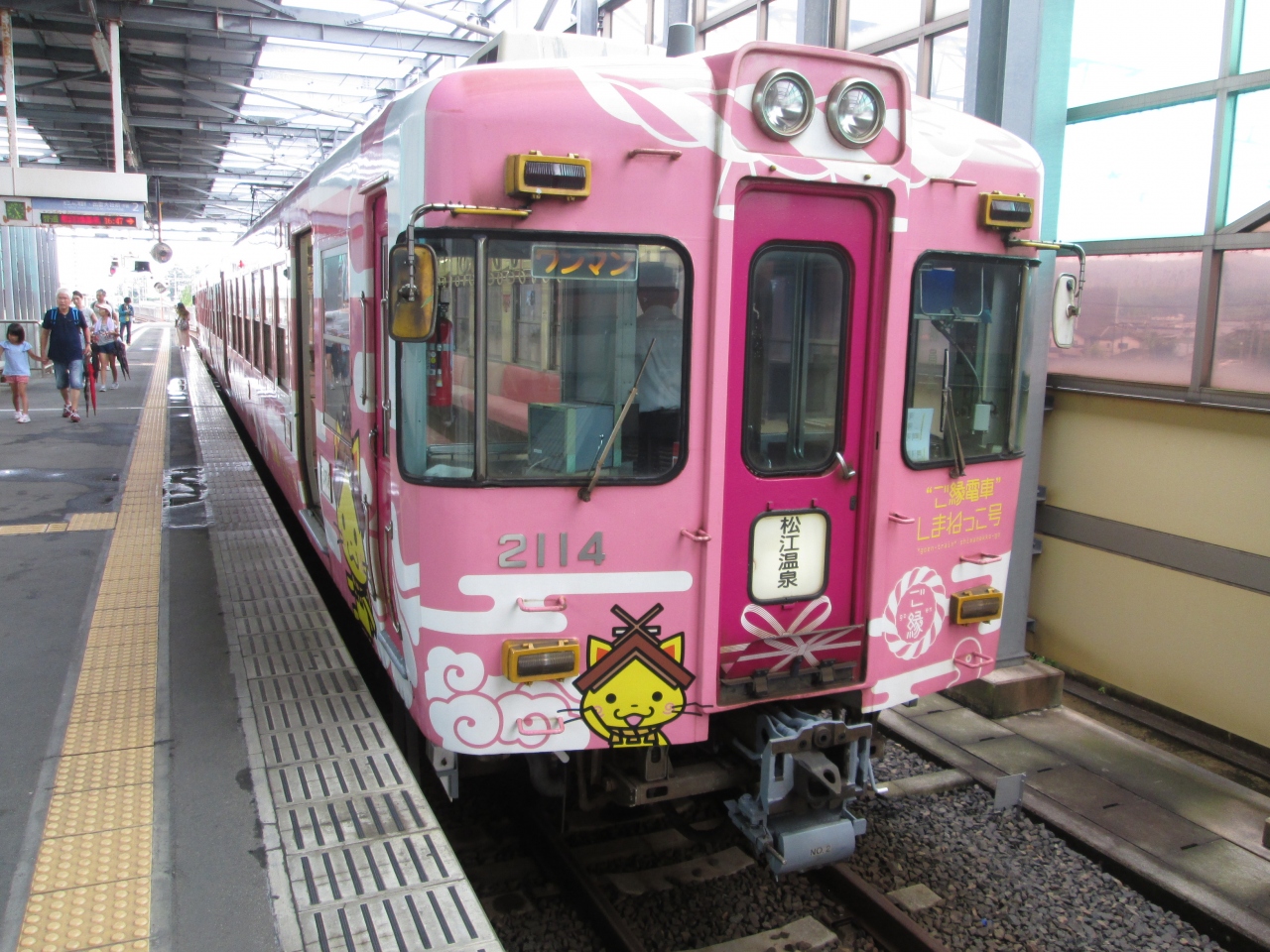松江駅行きの空港連絡バスは、飛行機が到着して、乗客が荷物を引き取りを待って出発でした。料金は990円です。米子空港からは、CMで有名になったべたふみ坂の江田島大橋を通り、中海の堤防見たいとろを通り、海を見ながら松江駅に向かう車窓の風景も良い空港連絡バスです。いがいとおススメです。