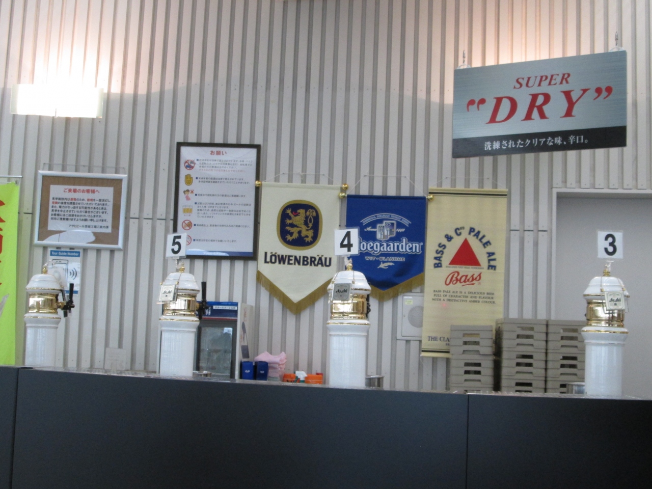 訪問時のイベントは、世界のビールを50mlのカップでテースティングがあります。その他、出来立てスーパードライ等を3杯までいただけます。