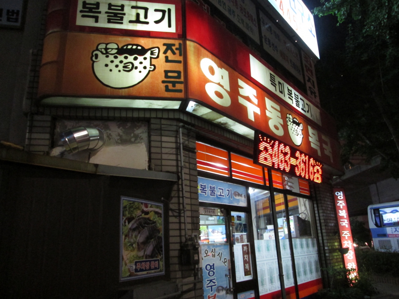 韓国で見かけるフグ屋さんで、ポクチリ(ふぐちり)を食べるのが好きです。