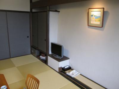 海を望む和室に泊まりました。線路、国道の向こうに海が見える高台にあるホテルです。