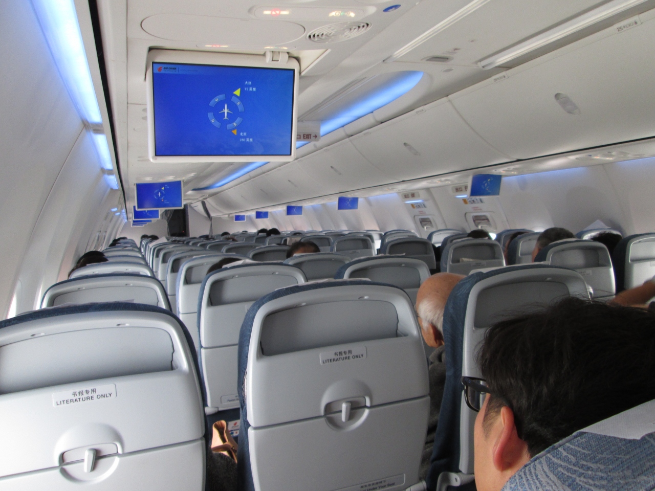 飛行機内のCAは、日本語の通じる人はいないようでした。注文は英語で聞かれるようになりました。日本の税関申告書も中国語のしかなく、その紙に記載。日本語のは何回も見て内容がわかっているので、それをもとに記載ができました。
