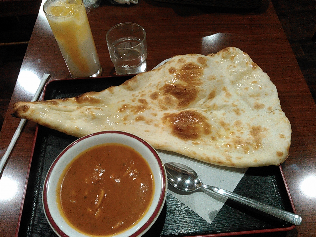 ランチの時間、お得なランチセットがあります。一番お得な1カレーセットの日替わりカレーセットからいろいろあります。日替わりカレーセットでも、ライスとナンを選ぶことができ、サラダ、ドリンクも付いてきます。今日は一番お得な日替わりカレーセット、カレーの辛さを選んで、そしてナンを選択、ドリンクはマンゴーラッシーをいただきました。お得感のあるインドカレーが味わえて、そして美味しいです。