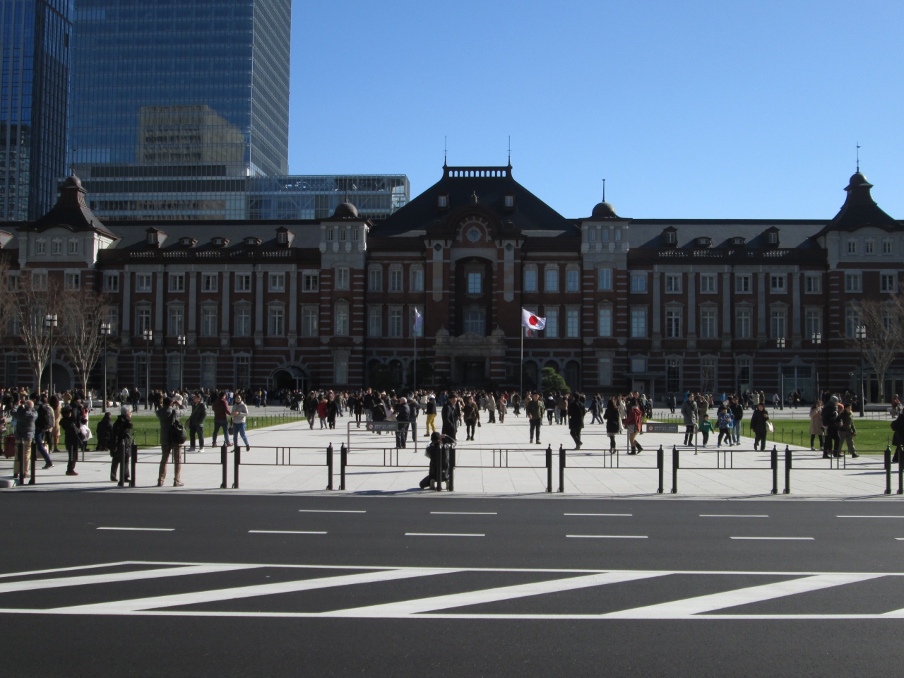 東京駅前の丸の内口の工事が終わりました。駅前広場から皇居まで直線の空間がつながりました。また、遠くから近くから東京駅の赤レンガ駅舎の眺めを楽しめるようになりました。そして、東京駅の風景が見て、記念撮影をしたくなるでしょう。