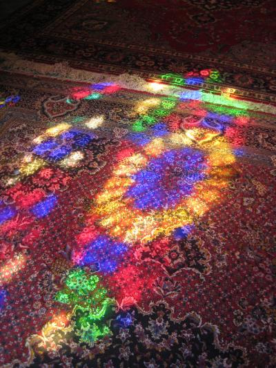 キリスト教の教会だと、だいぶ高い位置にステンドグラスがあるのでこんな風に床に色とりどりの光が落ちるっていうのをみたことがなかったのでこれは見る価値があります。