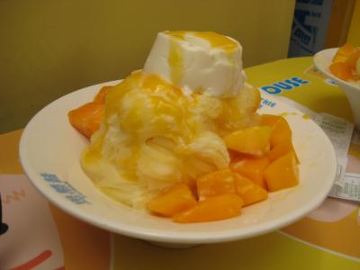 かき氷はミルク味でキーンってならないです。マンゴーたっぷりです。まだちょっと旬には早いと思うので今は冷凍かな~?ちょっと味が薄めでした。でも日本でマンゴーなんとかってデザート頼んだらほんの申しわけにしか載ってないのでうれしい。ほかにもいろいろあります。パンナコッタは可もなく不可もなくって感じなのでまあおなか具合と相談がよろしいかと。- 旅行時期