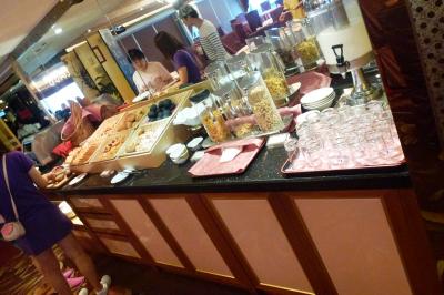 コンビニはありませんが、ホテルを出て右へいって最初の信号を右に行けば5分とかからずに食品スーパーがあって、飲食に不便はありませんし、朝のバイキングも中国にしてはおいしい部類だと思います。