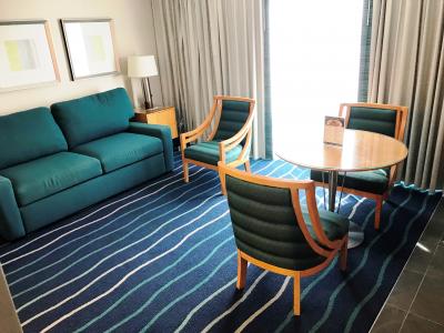 長女を含めて3人で1部屋ですので、2ベットにエキストラベッドをリクエストした所、「2ベットにエキストラ無し」か「1キングにエキストラ」と言われたので後者にしたところ、自動的にスウィートルームというチョイスになりました。