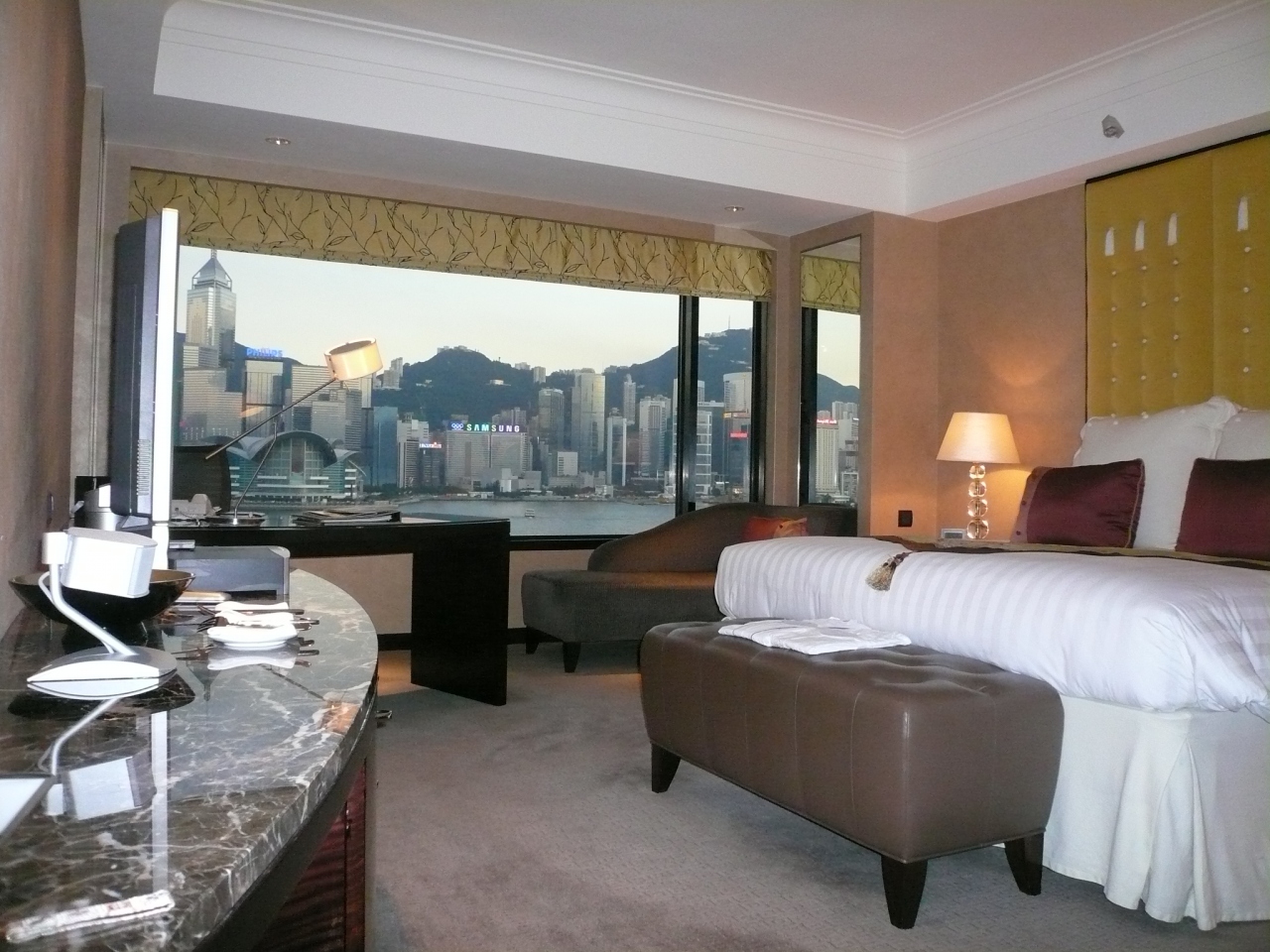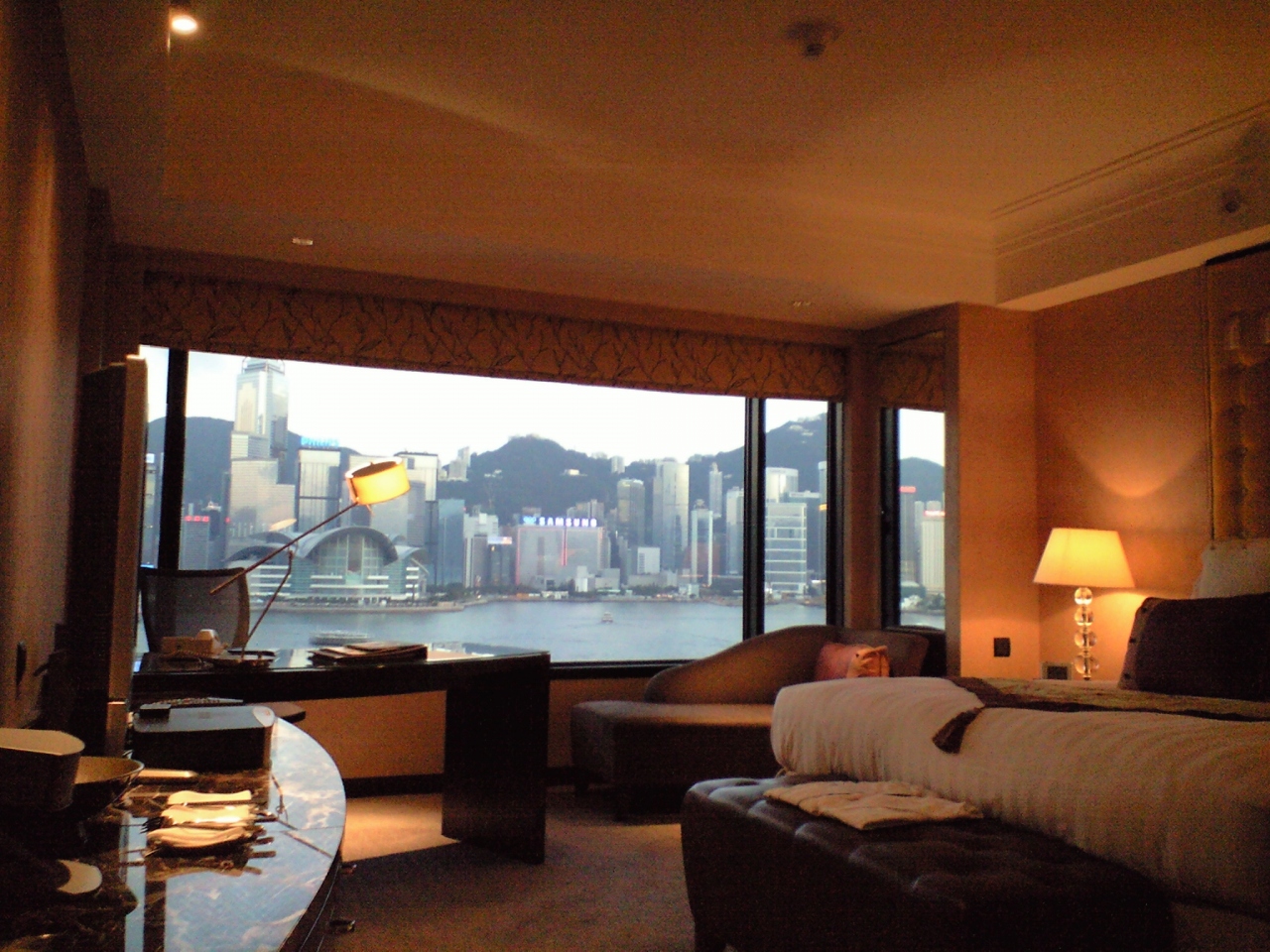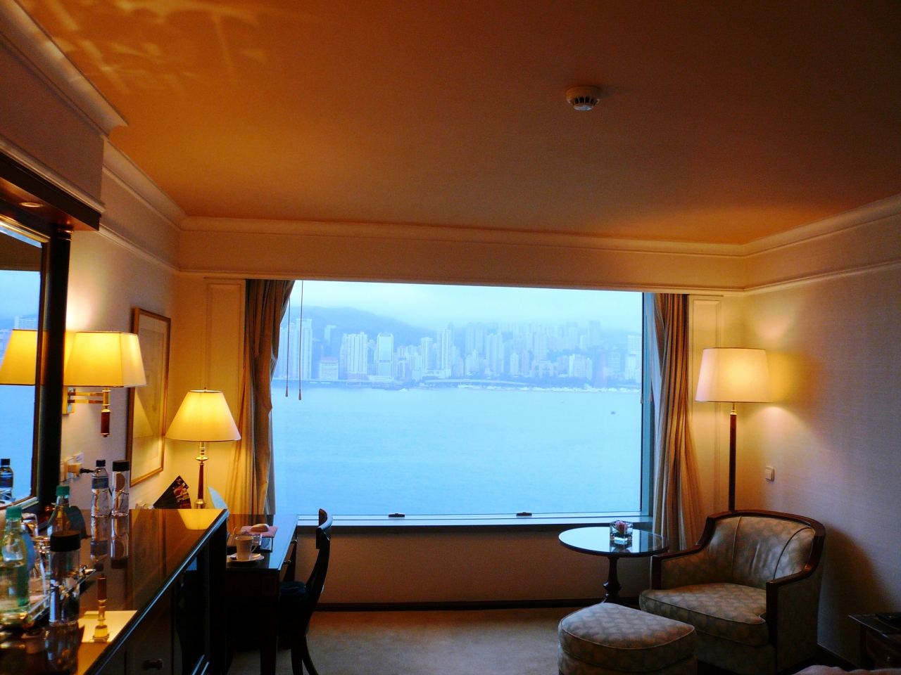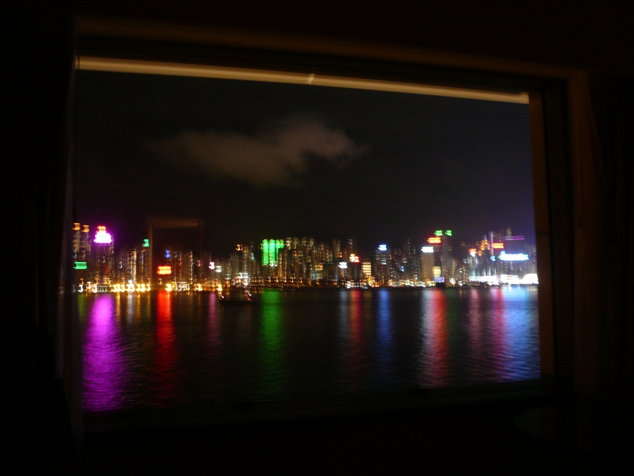 ロビーからのヴィクトリア湾の眺めも良いですが、明かりを消した部屋から見るベイビューは最高です。