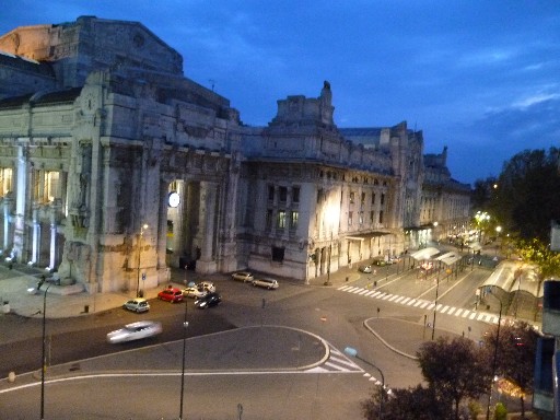 ミラノ到着時にゲリラ雨に襲われてずぶ濡れになりながらホテルに転がり込みましたが、画像のようにミラノ中央駅の駅前ロータリーに面している至近距離です。