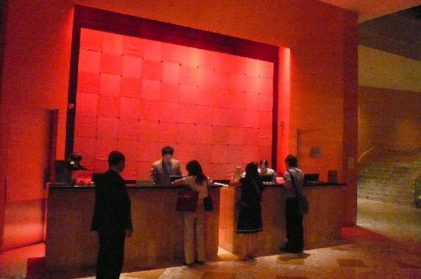 フロントの壁面の証明も赤く音楽もポップな曲が流れ、日本のウエスティンのような落ち着いた感じは全くありません。
