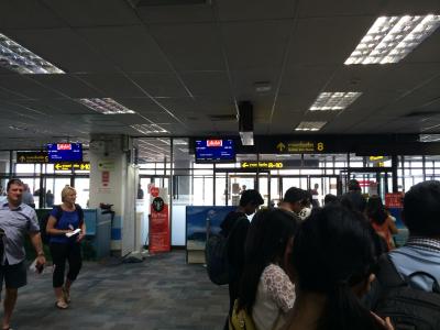 AirAsiaのFLY-THRU(乗り継ぎ)便の場合は出国する必要はなく、直接、国際線乗り継ぎカウンターを通って行きます。また、看板に日本語で「国際線乗り継ぎ」と記載してあるので困りませんでした。