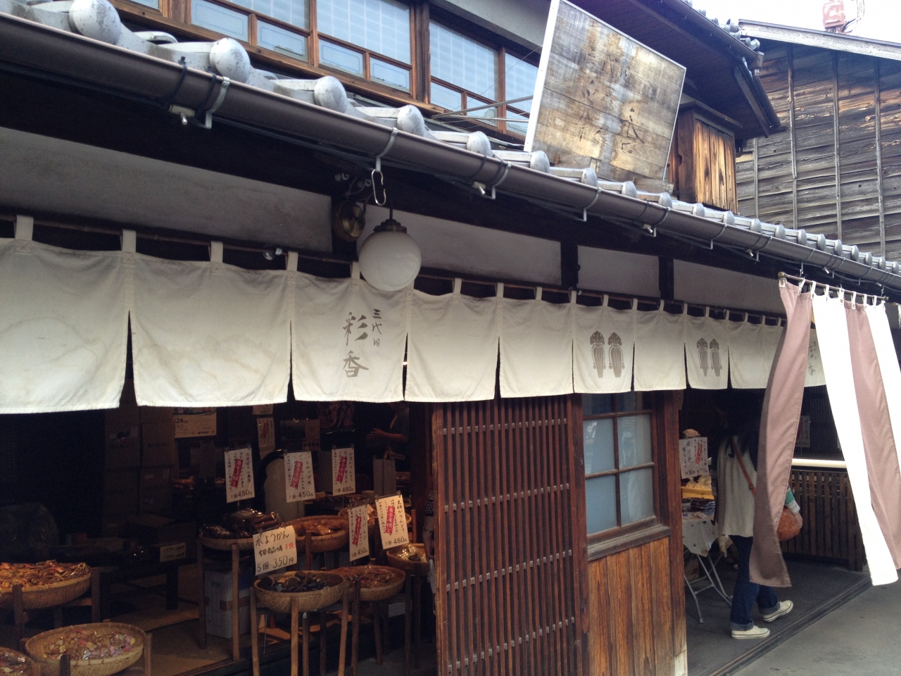 重厚な蔵づくりの建物が並び、どれもお店として商売をされているので歩くだけでなくお土産なんかを買ったり、食べ歩きしたりと楽しい街です。お店の数も結構あります。