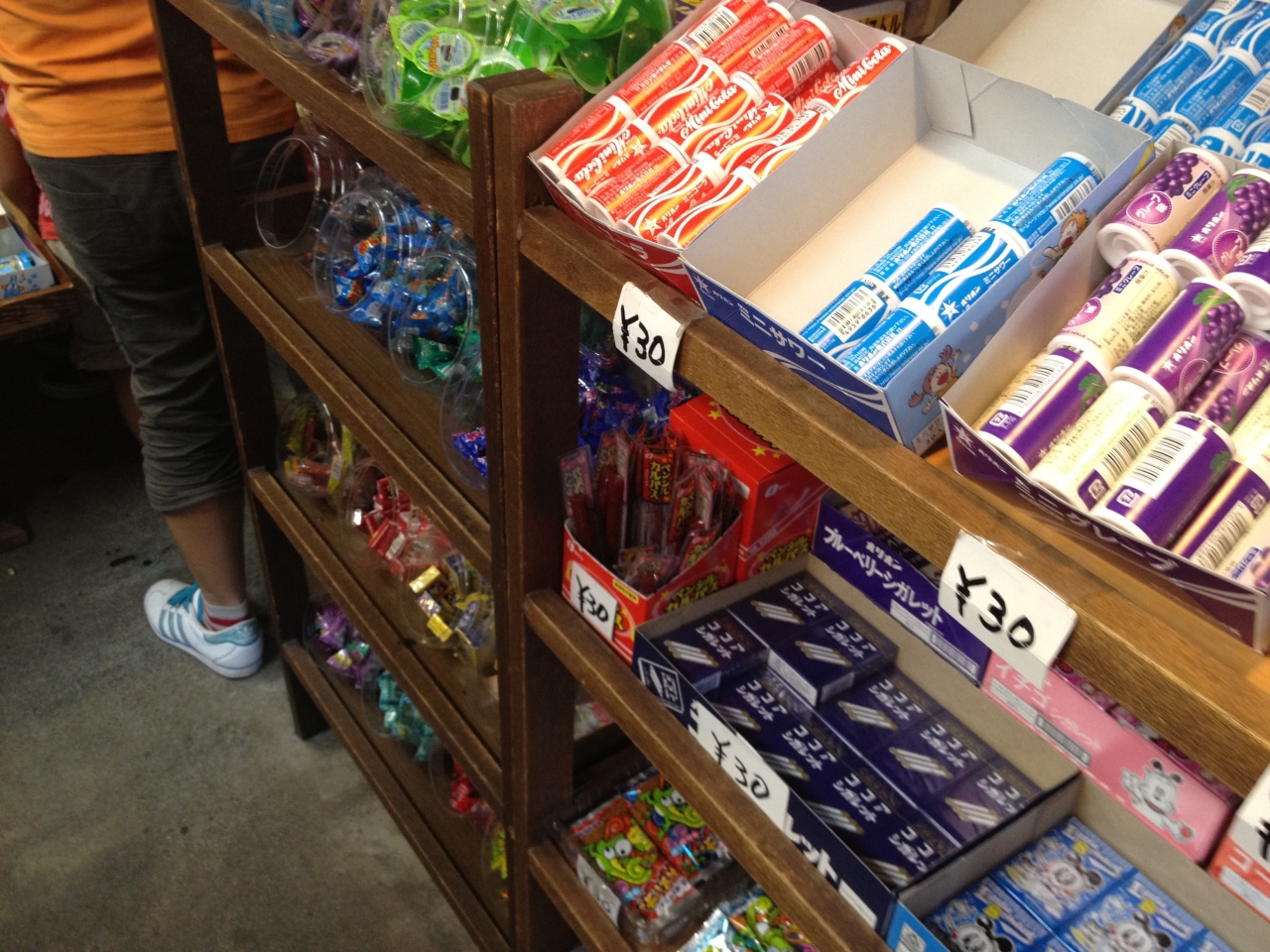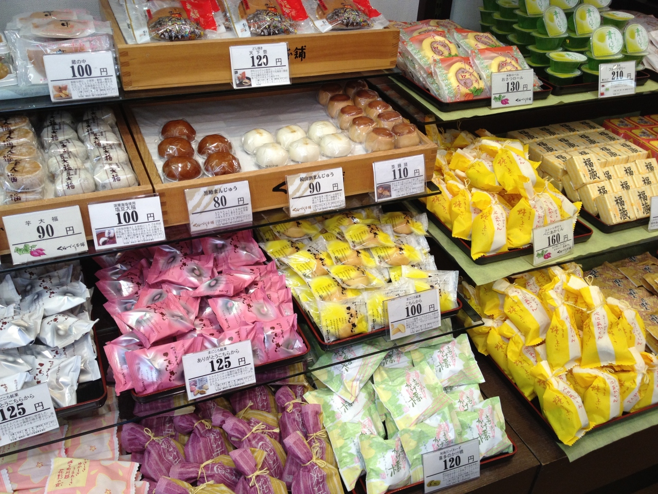 芋菓子が有名ですが、芋菓子のみならずいろいろなお菓子が並んでいます。色とりどりで形がカワイイ飴なんかも沢山並んでいました。見ているだけでも楽しくなります。