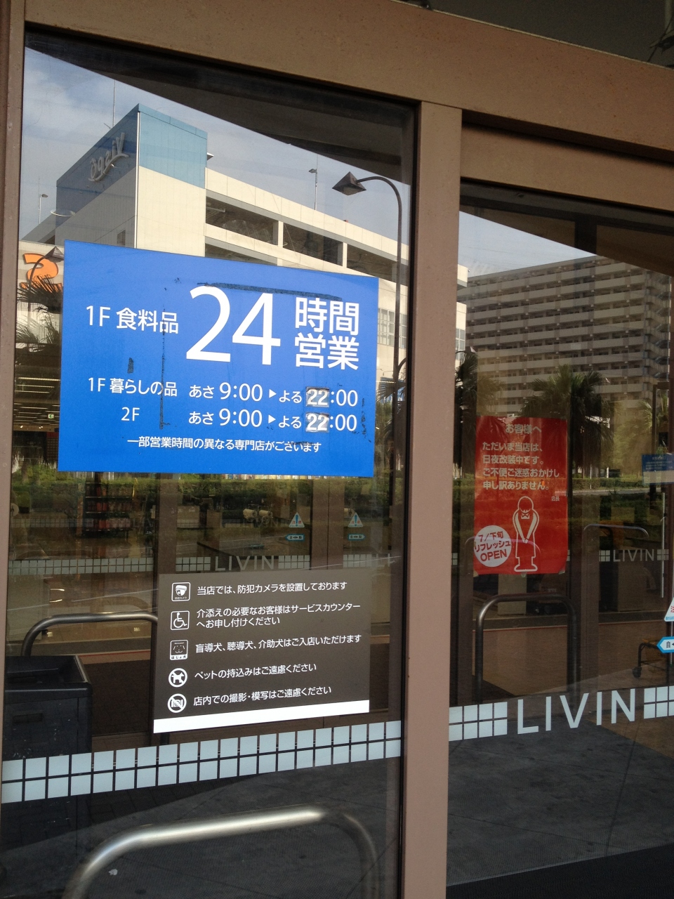 1F食料品売場が24時間営業をしていて便利です。休みの日なんかは早朝からお客さんがちらほらいて空いていて買物し易いですね。