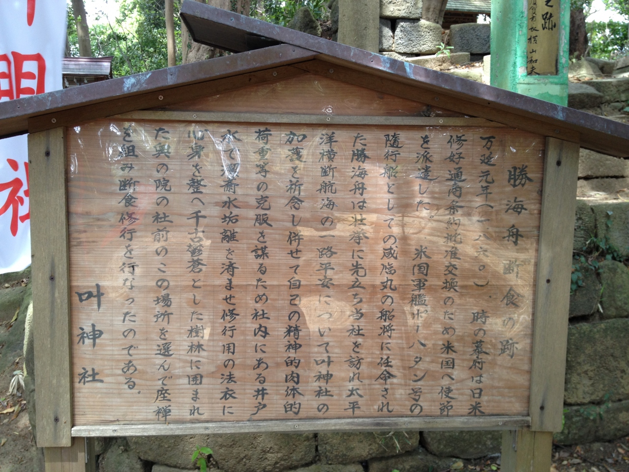 また、勝海舟が断食修行をしたと言われていて記念碑が建てられています。