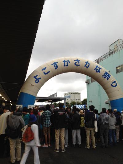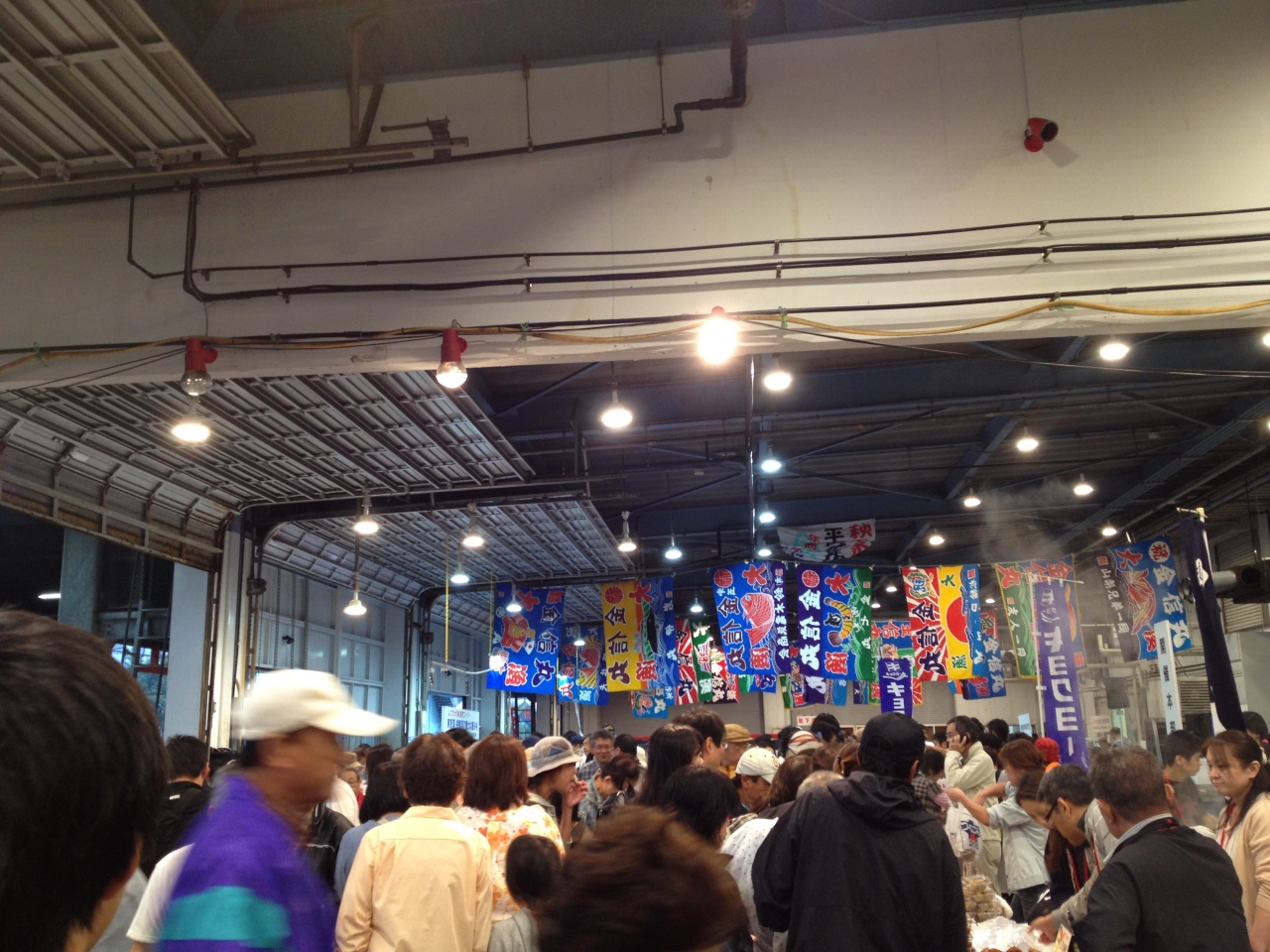 場所は横須賀魚市場、私はシャトルバスが横須賀中央からも出ていたのでそちらから利用しました。さかな祭の開始は7:00からですが、7:00前にはもう人が沢山集まっています。始まるまでは魚市場の入口で並んで待ちます。7:00の開始と同時に皆さんやっぱり鮮魚の販売コーナーに向かいます。一気に販売コーナーは人だかりになり購入するのに結構必死な感じです。