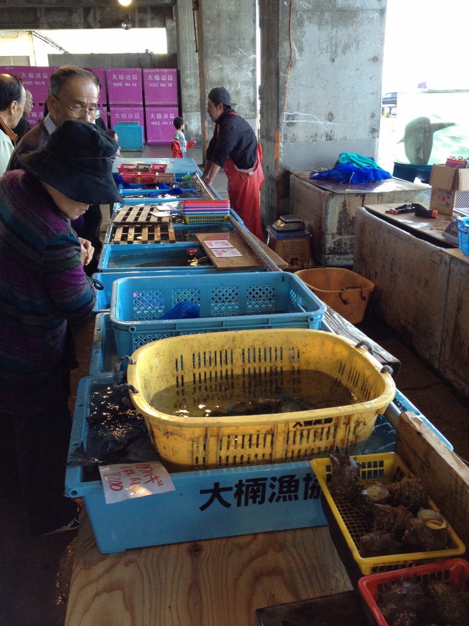 魚屋は活魚でカワハギがいたりと新鮮な魚が売ってました。甲イカ(スミイカ)を一杯購入して刺身で食べましたがめちゃくちゃ美味しかったです。
