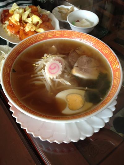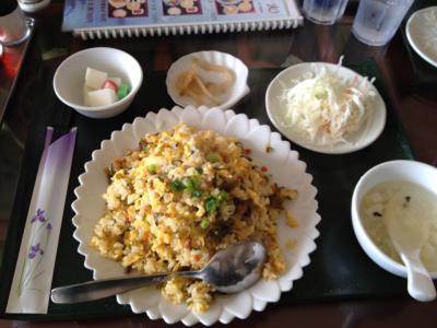 息子と二人で頼んだのは、サンマーメンと海鮮炒飯。