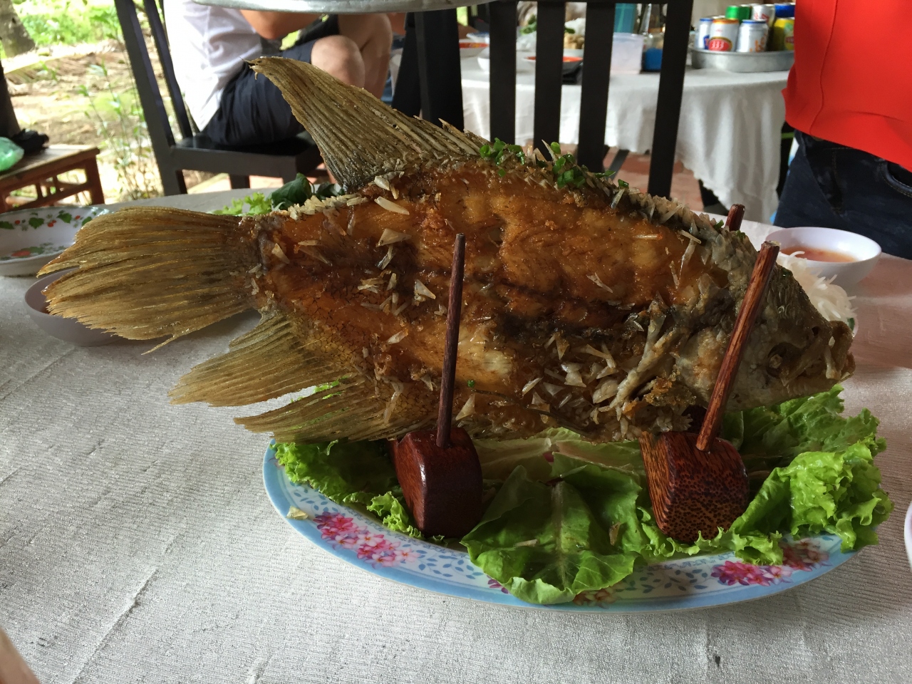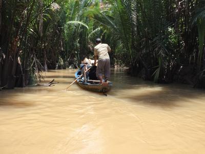 メコン川クルーズ、昼食、蜂蜜農園見学、ジャングルクルーズ、ココナッツキャンディー工場、伝統音楽鑑賞、手漕ぎボート体験、永長寺見学というかなり濃厚なツアーです。上手にツアーが組まれていてホント楽しいです。昼食も付いているのですが豪華です。