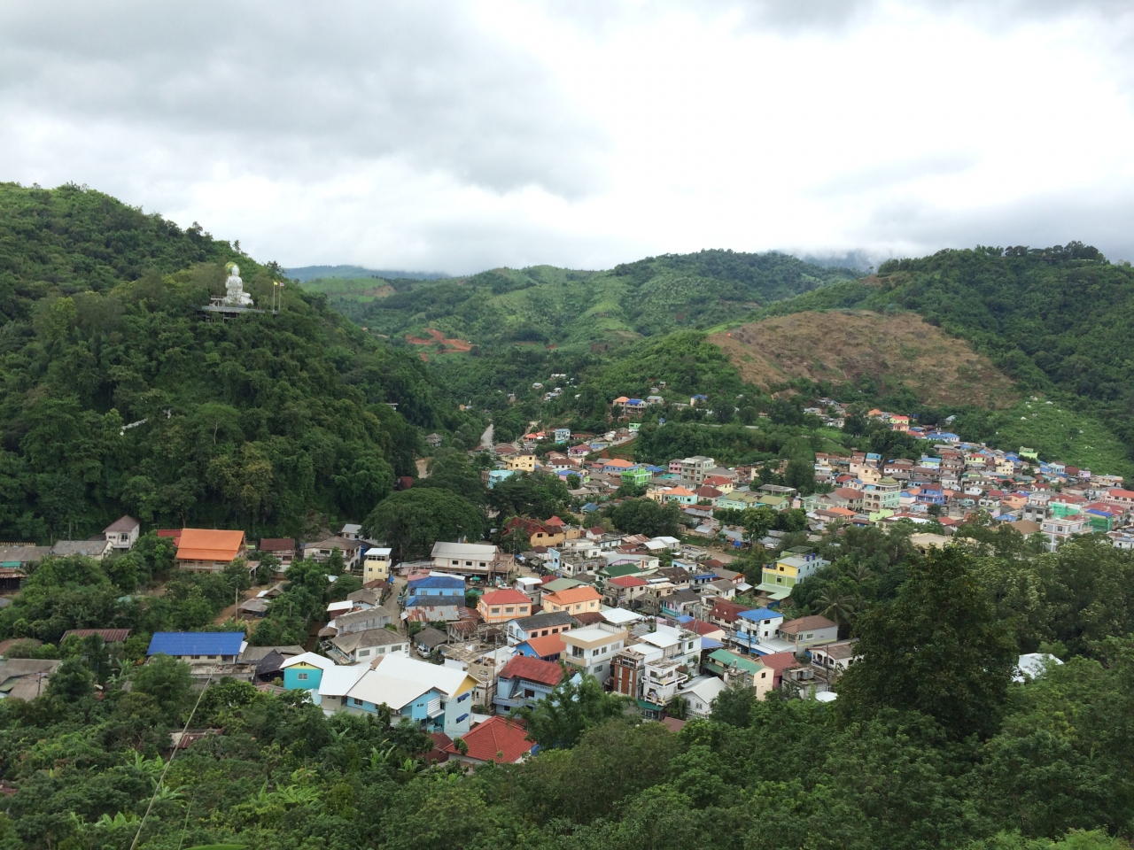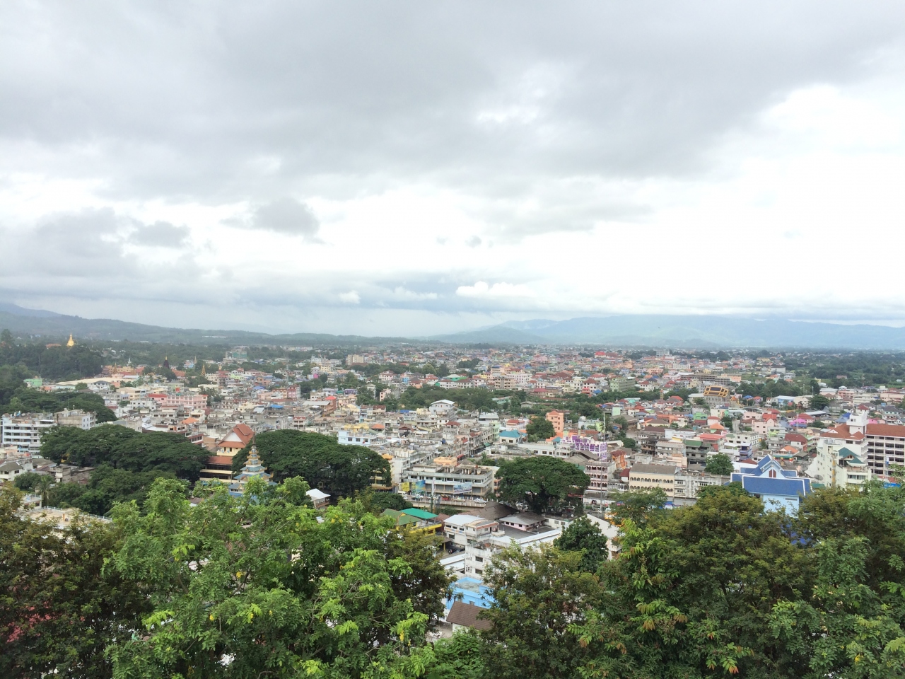 メーサイの大通りから横に入ったところにある寺院。丘の頂上にあるので眺めが抜群です。長い階段があって登るのが少し大変ですが、それもまた楽しいです。