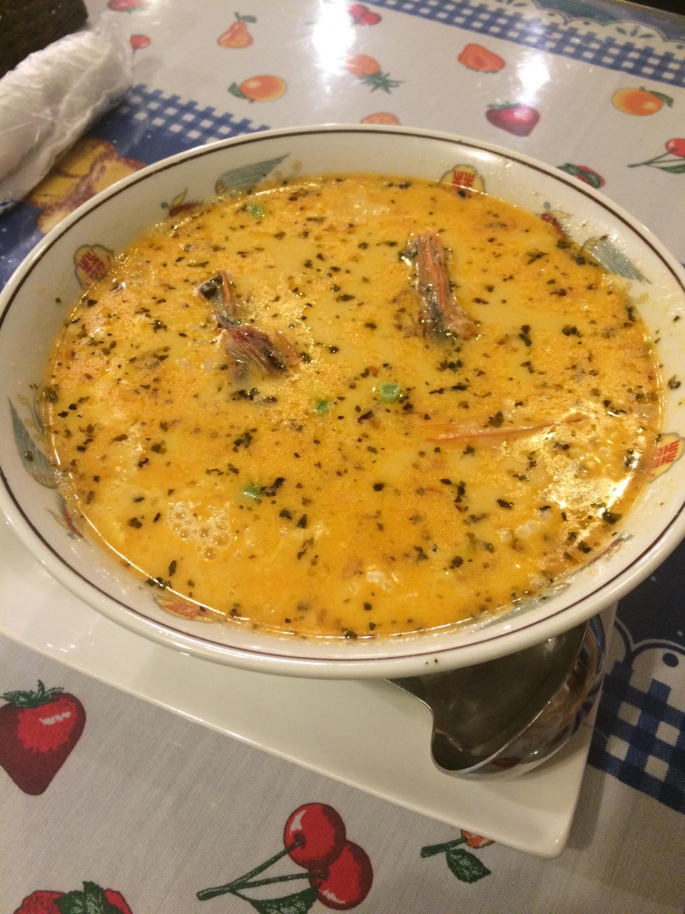 CHUPEは、シーフードのスープの中にご飯が入っている料理。すごく美味しい。シーフードの味がしっかりしていて、独特の味わい。