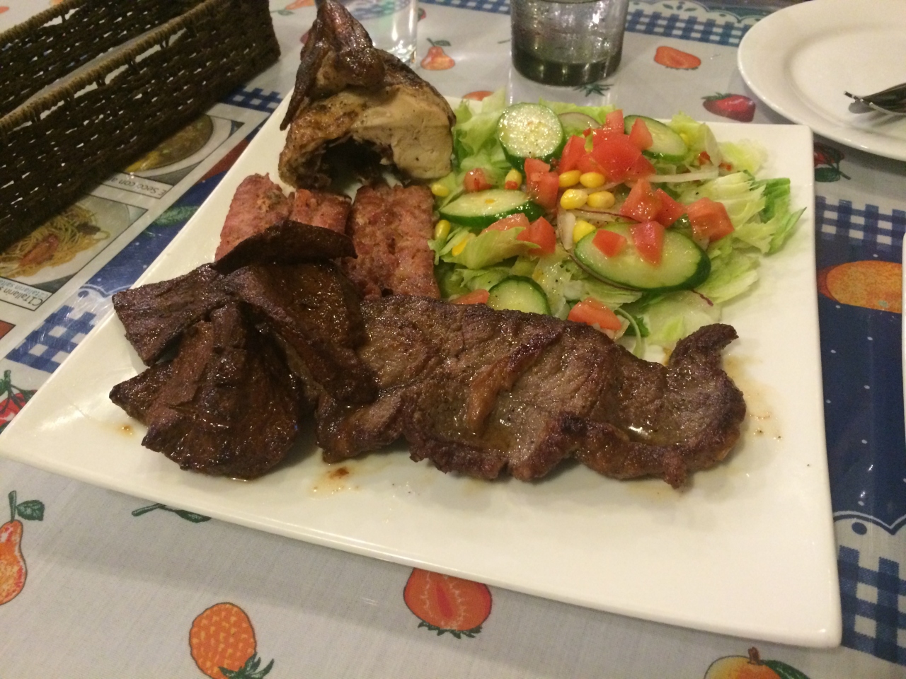 PARRILLADAは、バーベキュー的ないろんな種類のお肉の盛り合わせ。ボリューミーで美味しい!
