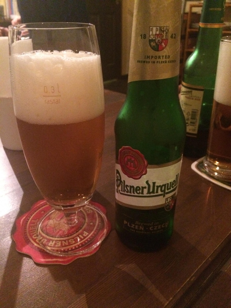 まずはチェコビールのピルスナーウルケル。すっきりした感じで飲みやすいです。
