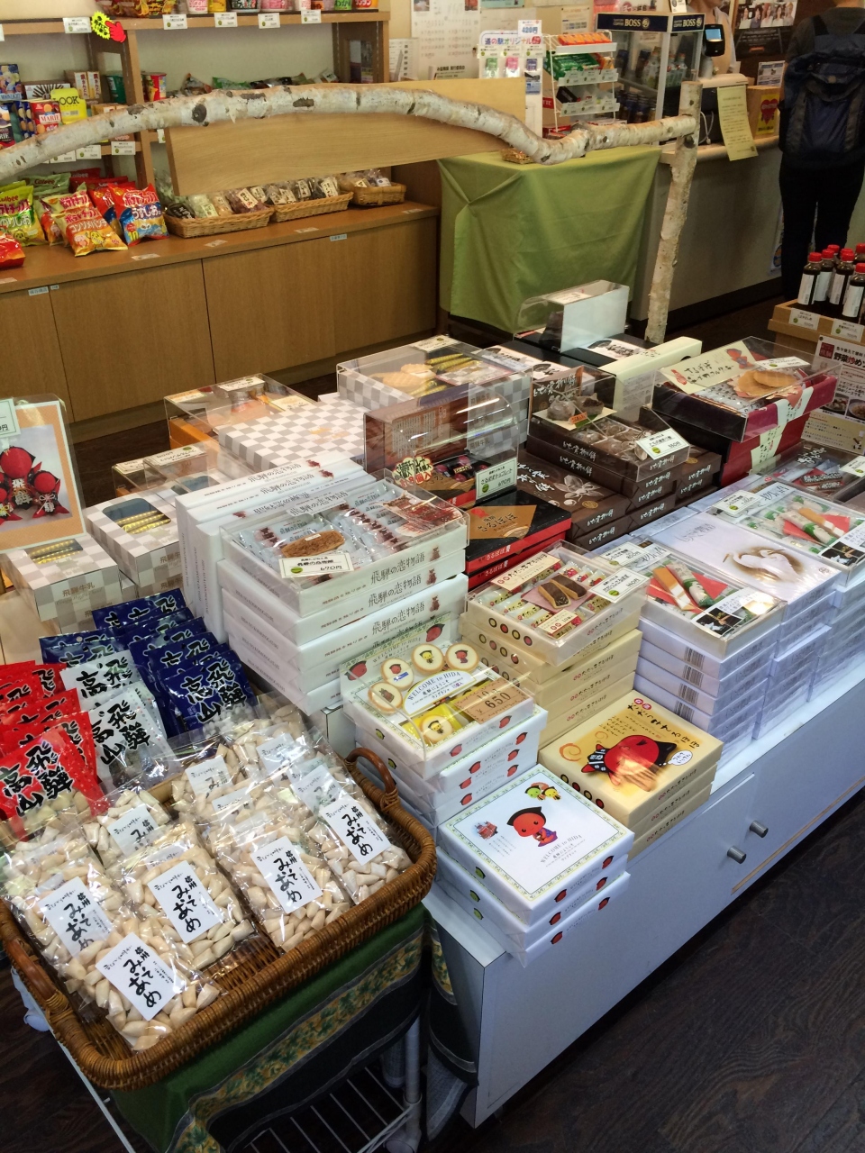 飛騨のお菓子や、漬物などの加工品など、いろいろ揃っていました。